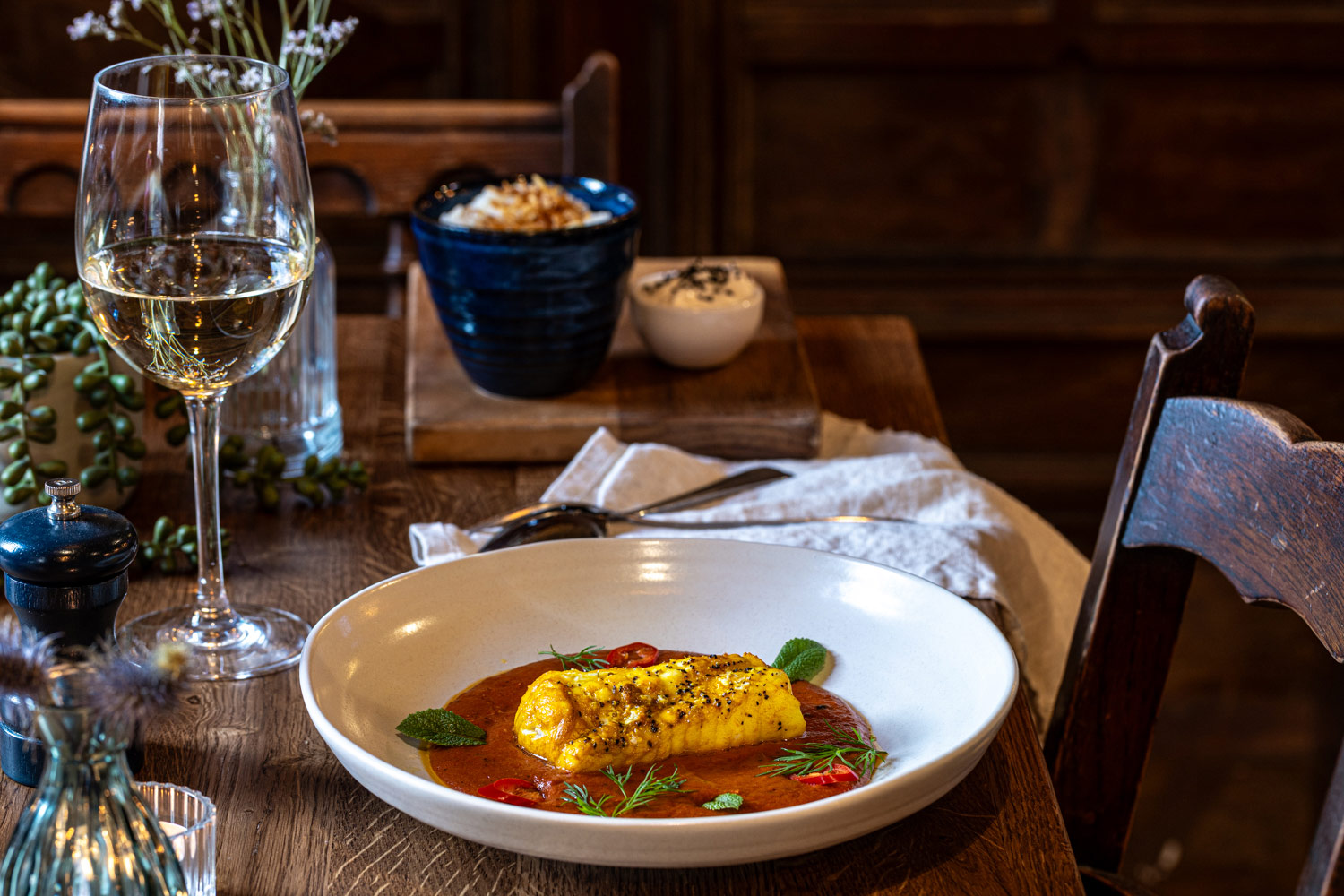 South-West monkfish, butter makhani sauce, fragrant rice | 29.5 701 kcals
